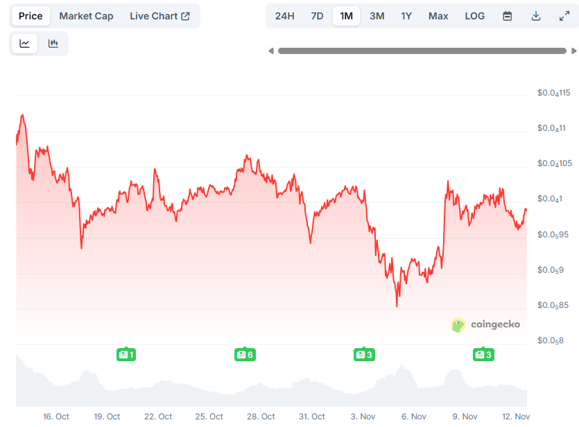 Despite the enthusiasm, the price of the meme coin did not post any substantial gains today (November 12) and, in fact, remains in the red on a daily scale. As of this writing, SHIB trades at around $0.000009883, representing an 8% decline over the past month.