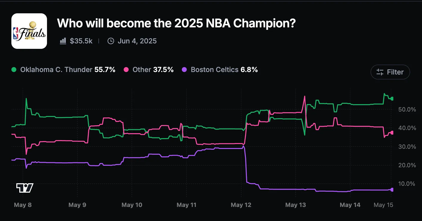 Odds on Myriad have swung to favor the Oklahoma City Thunder to win the NBA Championship, even more than on traditional sportsbooks.